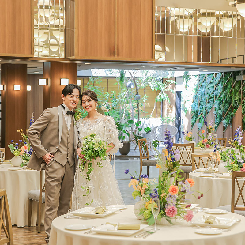 ナチュラルで明るい雰囲気を求めるカップルに人気のバンケットです。